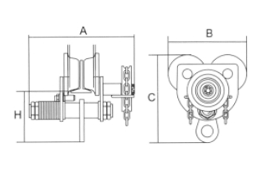 GCL系列單軌小車用途:廣泛地適用于工廠、礦山、碼頭、倉庫、建筑工地等,單軌小車用于安裝機器設備,吊運貨物的場合,單軌小車尤其適用于無電源地點的作業。